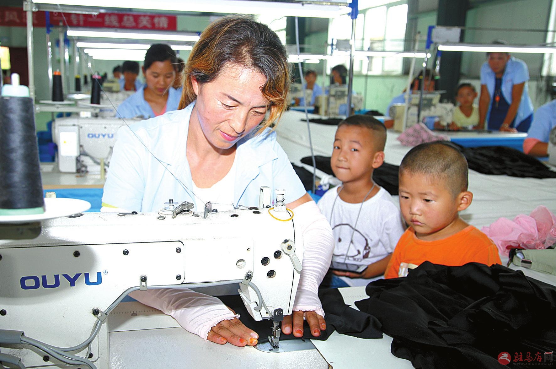 日前,泌阳县赊湾镇马湾村贫困户邓秀梅带着两个年幼的儿子,来到赊湾镇扶贫中心工厂,开始了她的上班生涯。