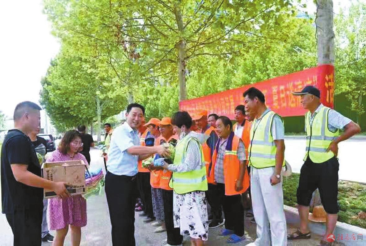 胡小末为炎炎烈日下工作的保洁员送清凉。