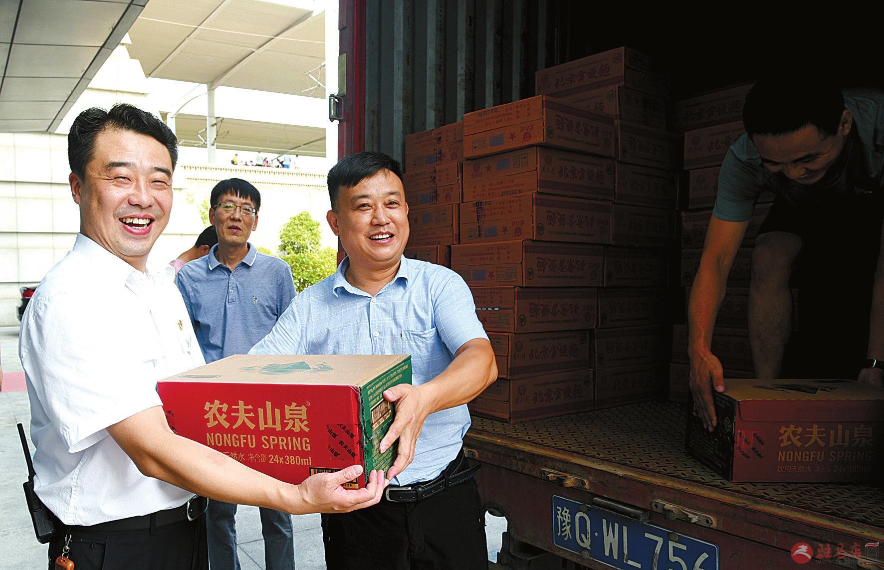 8月14日上午,三辰集团、驻马店市陈氏文化研究会为驻马店西站高铁工作人员和环卫工人送去价值2万元的纯净水和方便面。