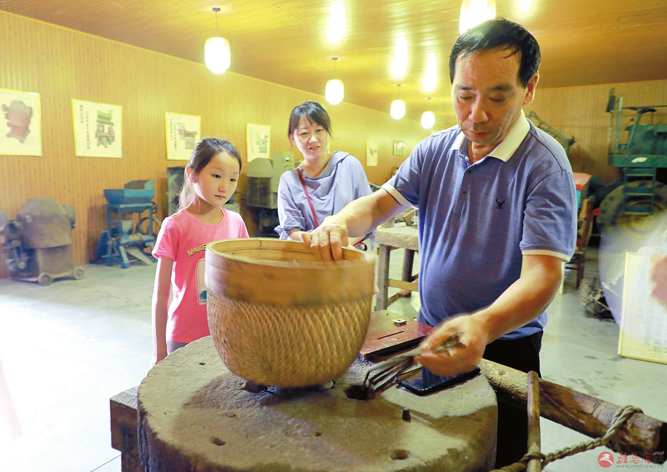 张大伟演示石磨香油技艺。
