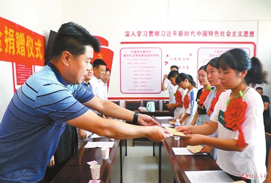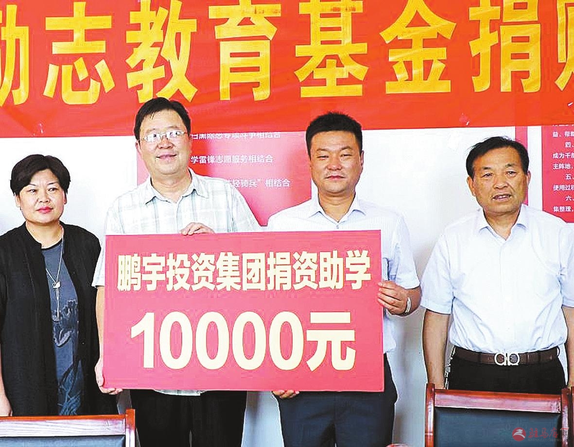 8月20日上午,鹏宇投资集团联合驻马店日报报业集团,在上蔡县大路李乡栗庄村举行爱心助学捐赠仪式,向栗庄村励志文化教育基金会捐款,用于帮助该村今年考入大学的14名贫困学子,解决他们的生活、学习难题。驻马店日报社、天中晚报、鹏宇投资集团和上蔡县人大常委会、大路李乡、栗庄村文化教育励志协会相关负责人出席捐赠仪式。