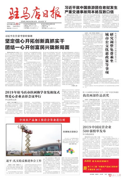 2019年驻马店市扶困助学金发放仪式暨爱心企业表彰会议举行