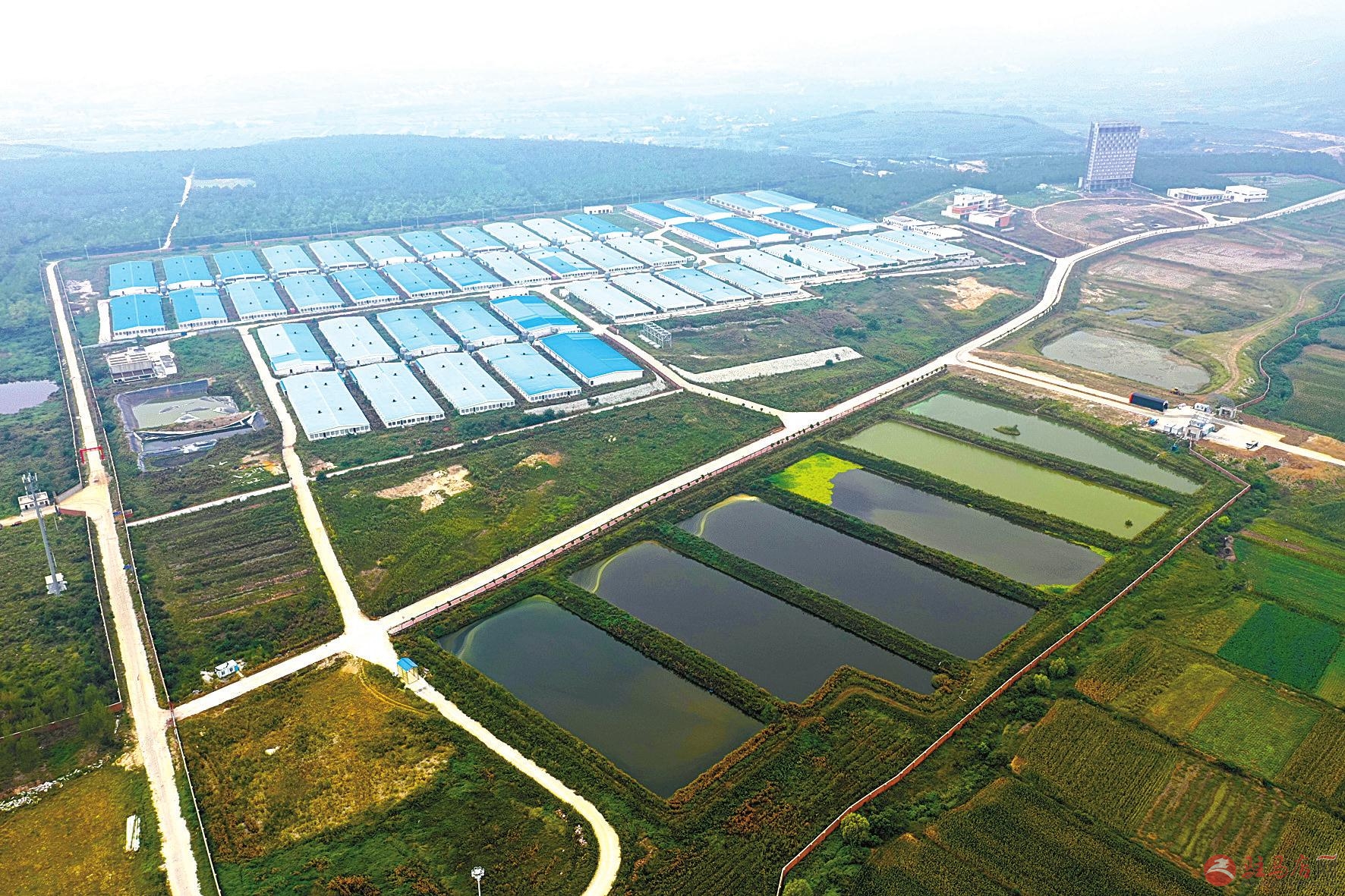 8月22日,无人机拍下长龙山35万头生猪养殖加工项目场景。