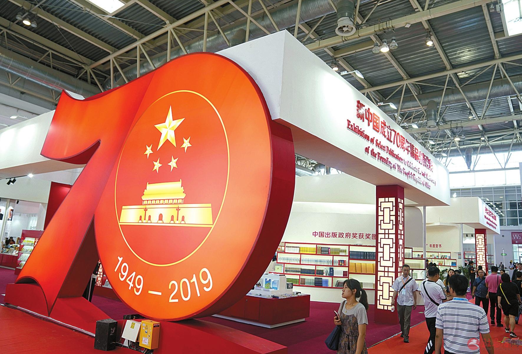 这是第26届北京国际图书博览会新中国成立70周年精品出版物展区(8月21日摄)。新中国成立70周年精品出版物展日前亮相正在举办的第26届北京国际图书博览会。一批具有中国特色、中国风格、中国气派的优秀出版物,展现了中国出版业的发展历程和繁荣气象。新华社记者 金良快 摄