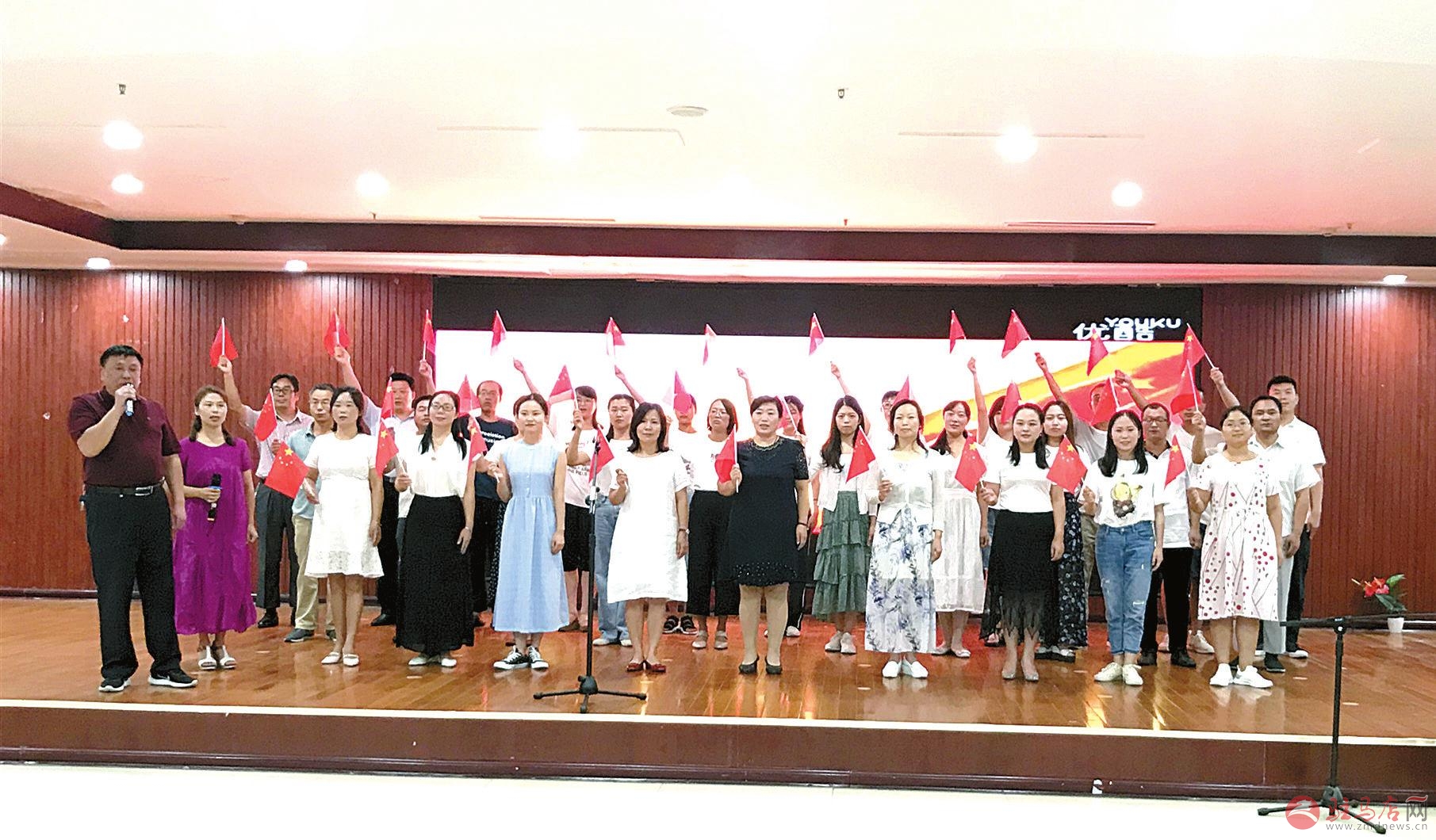 结业联欢晚会上合唱红歌。