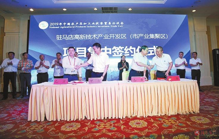 9月5日下午,第二十二届中国农产品加工业投资贸易洽谈会召开在即,驻马店高新区举行区情推介和签约仪式,仪式上共签约16个亿元以上项目,总投资246.2亿元。