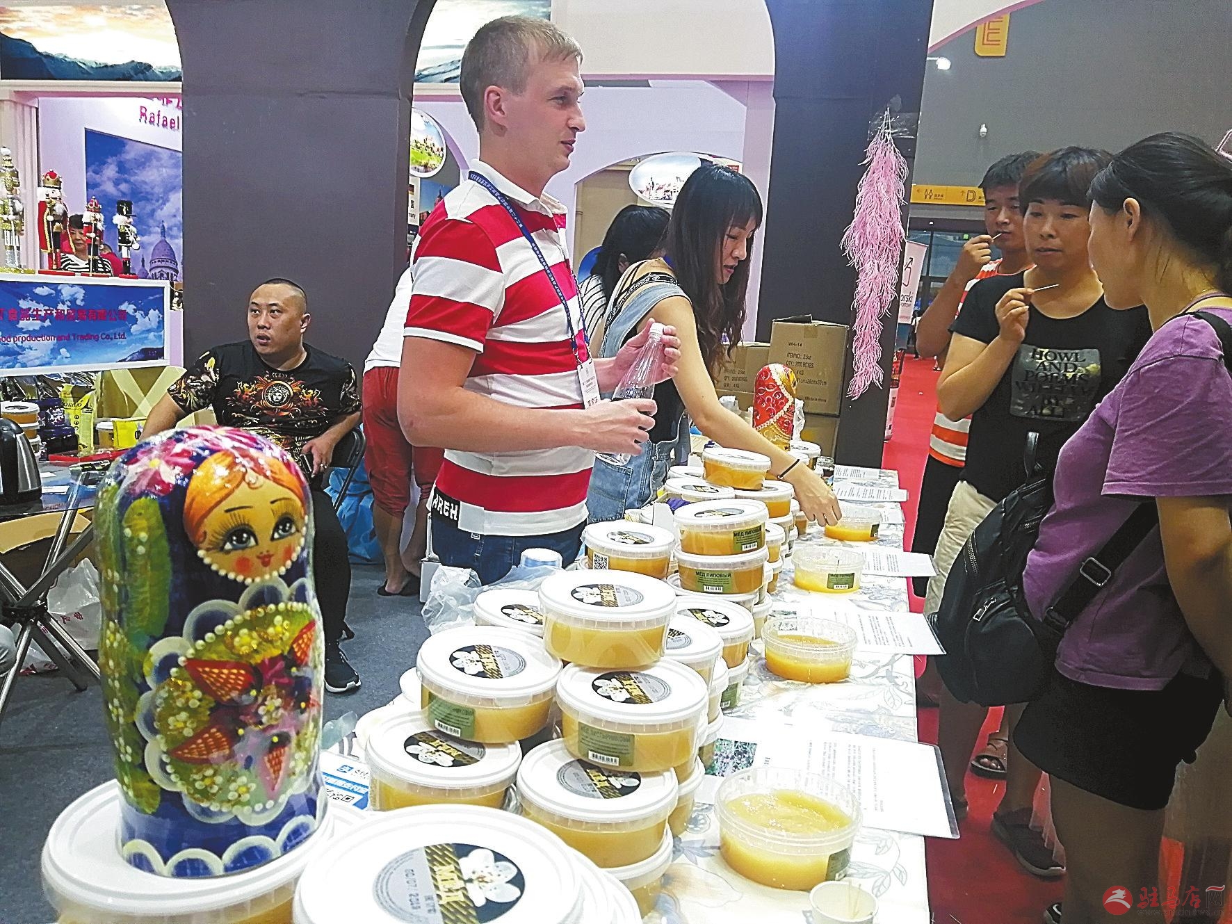 白俄罗斯客商展销本地特色产品。 记者吴波摄