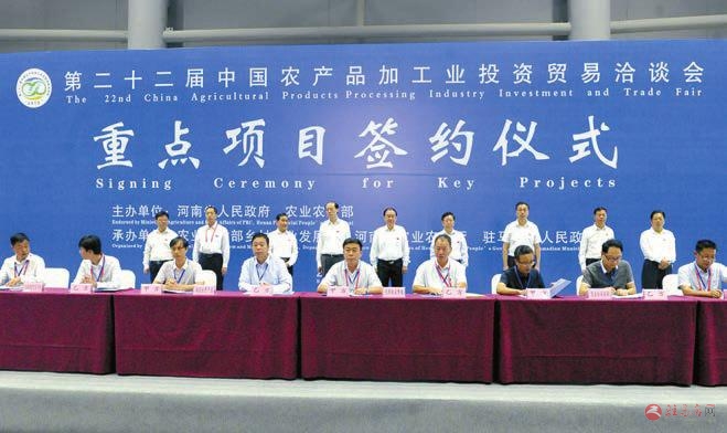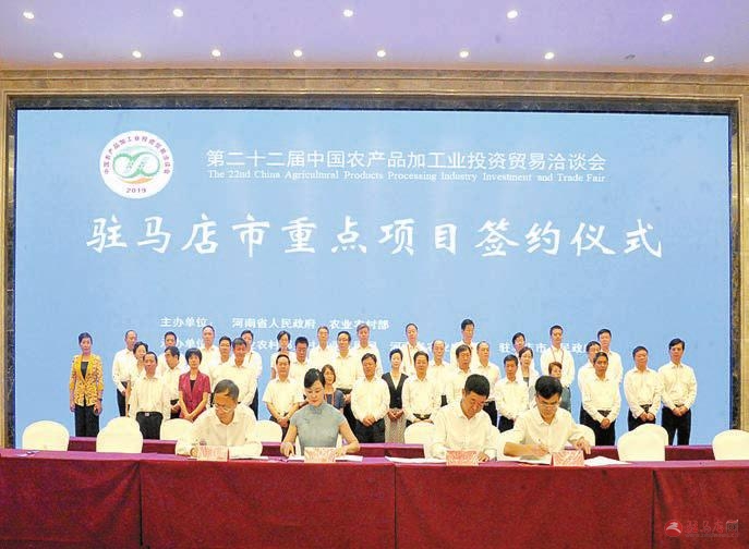 中国(驻马店)国际农产品加工产业园推介签约活动高朋满座。