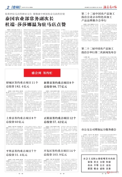 正阳县签约重点项目12个 总投资57.42亿元