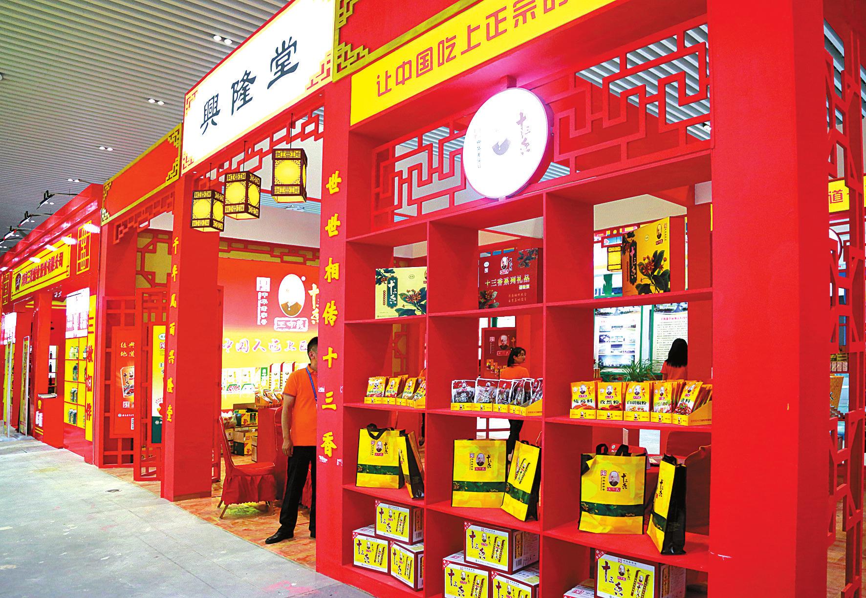庄重典雅的十三香集团展位。