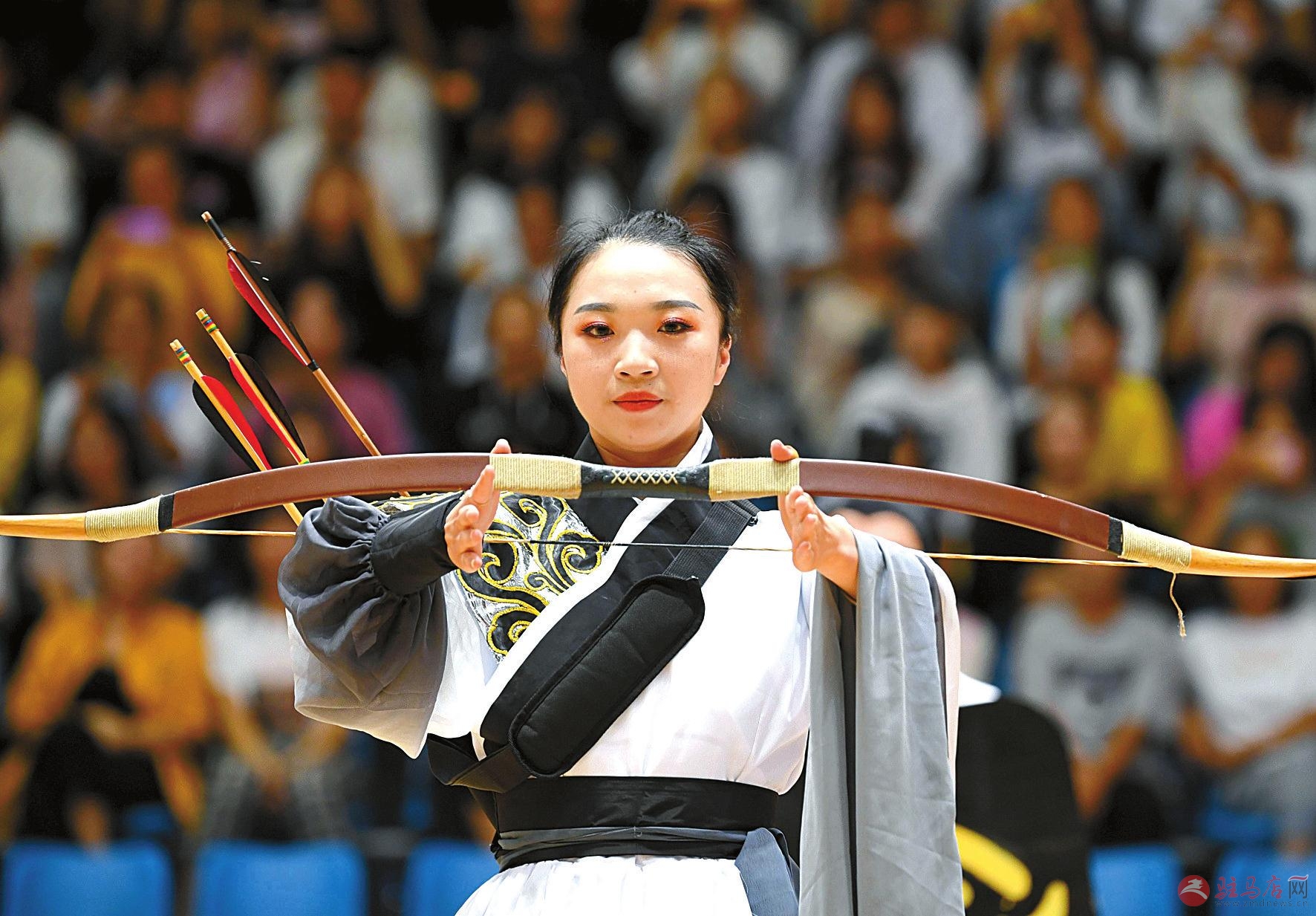9月9日,河南代表队选手在比赛中表演节目《中华射艺》。