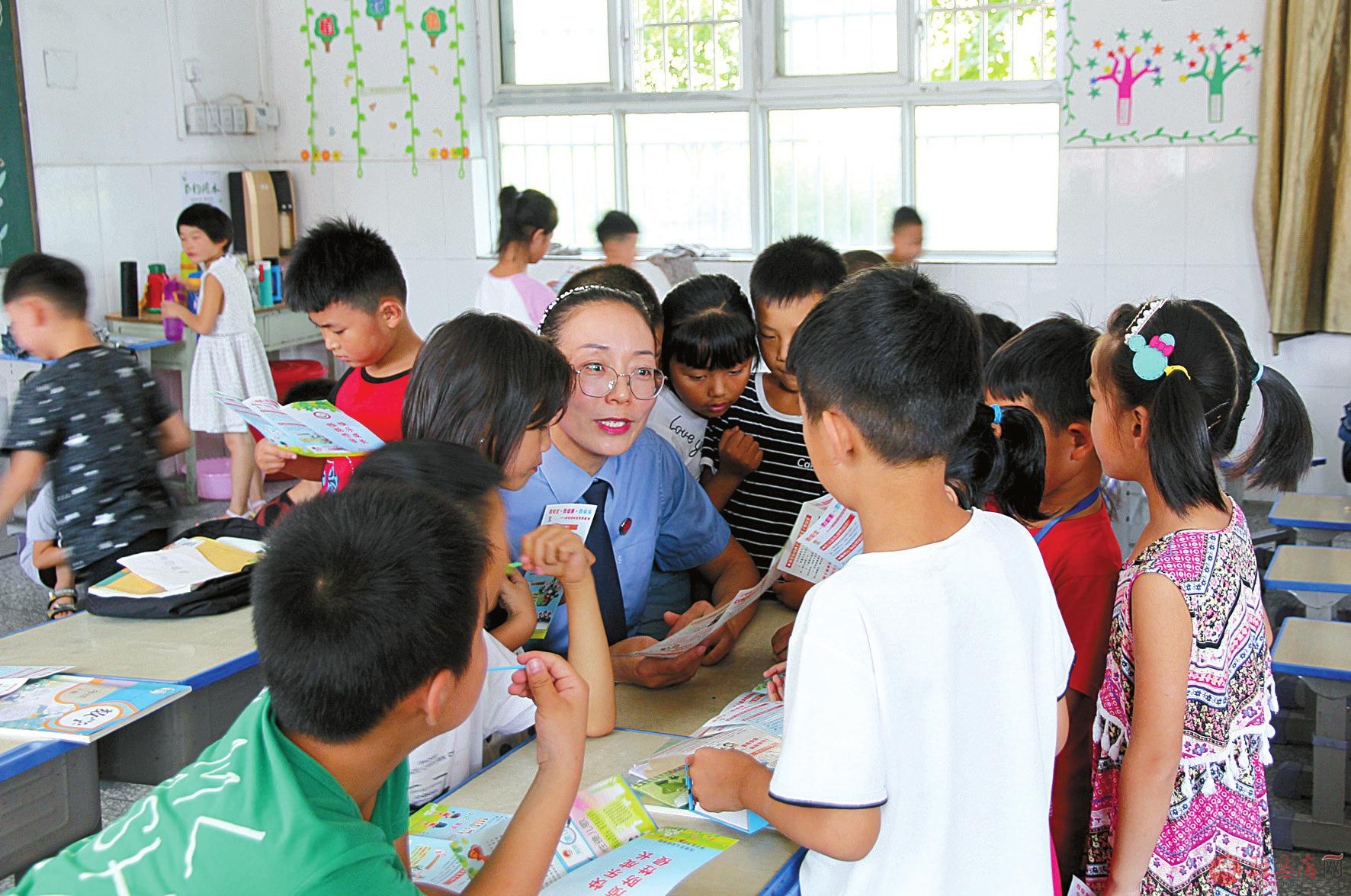 近日,汝南县人民检察院华平花季护航工作室的干警到该县清华园小学部进行法治宣传。