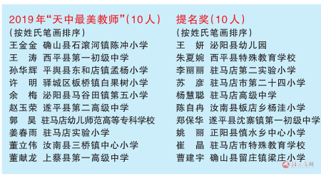市委常委、宣传部部长戚存杰为“天中最美教师”颁奖。