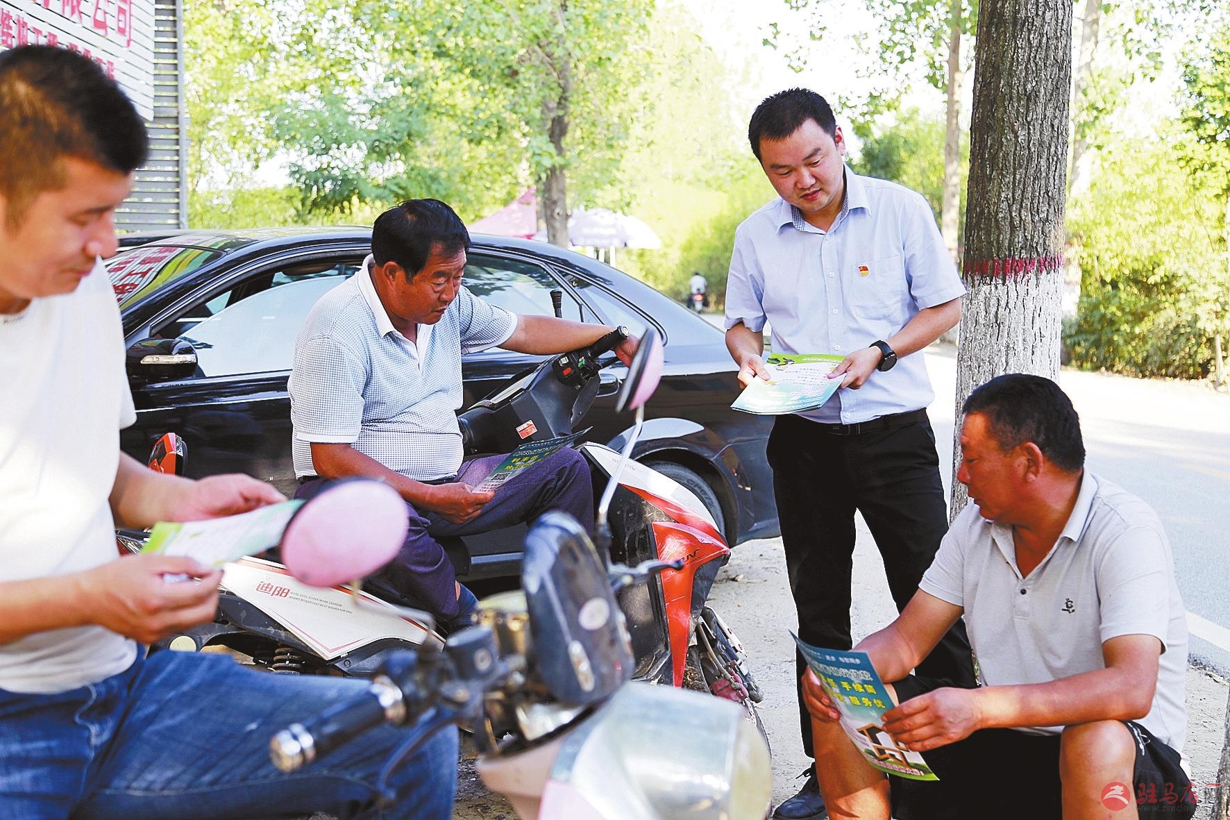 张亚伟在乡村向群众介绍“三农”贷款业务。