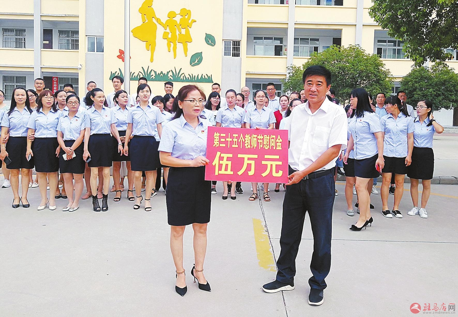 图为开发区主要负责人为一线教职工送去慰问金。