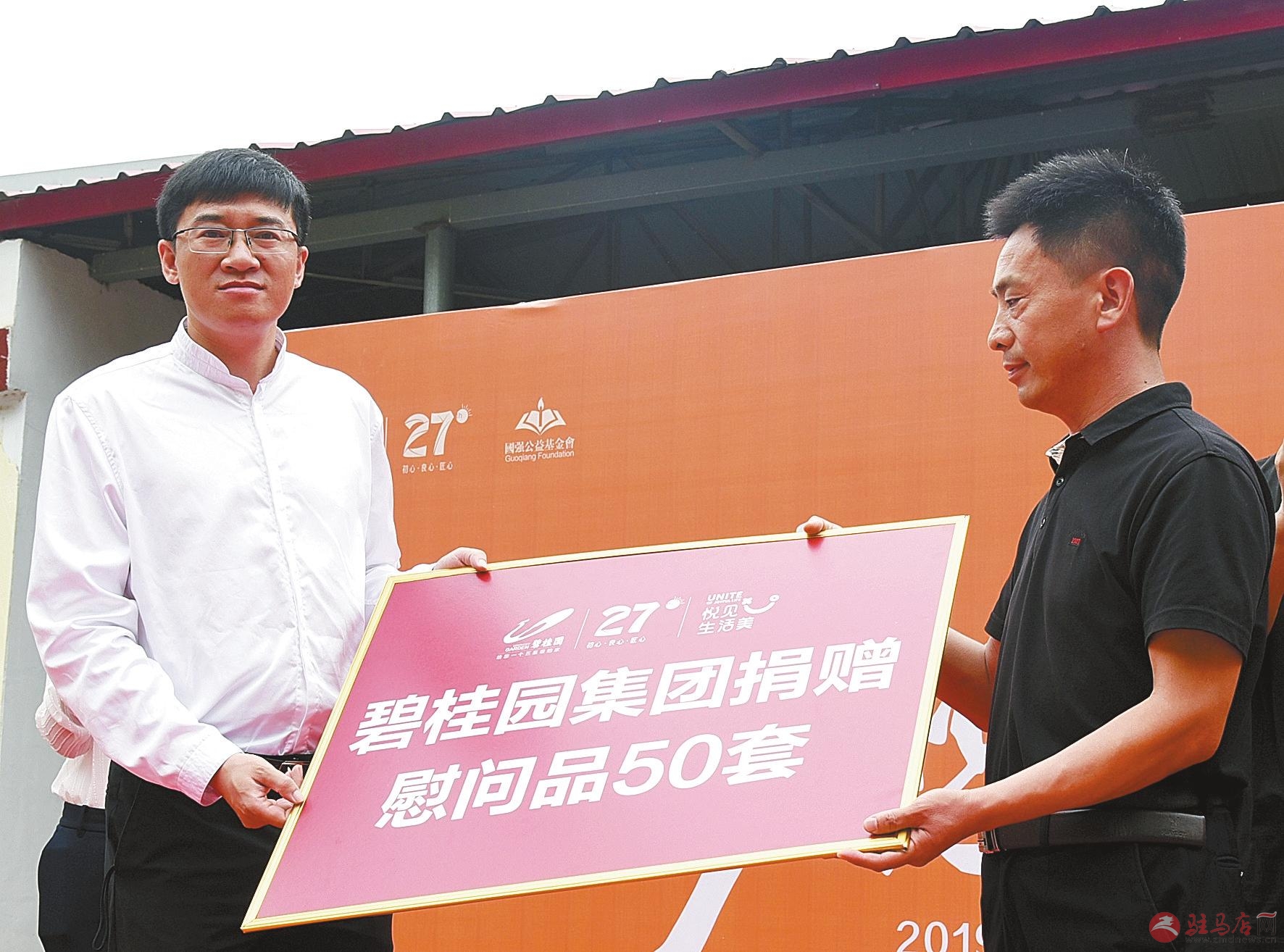 9月11日上午,碧桂园集团联合驻马店驻报传媒集团,在上蔡县大路李乡栗庄村举行爱心捐赠仪式,为该村送去了中秋节日礼品。驻马店驻报传媒集团、上蔡县人大常委会、碧桂园集团、大路李乡有关负责人参加了捐赠仪式。