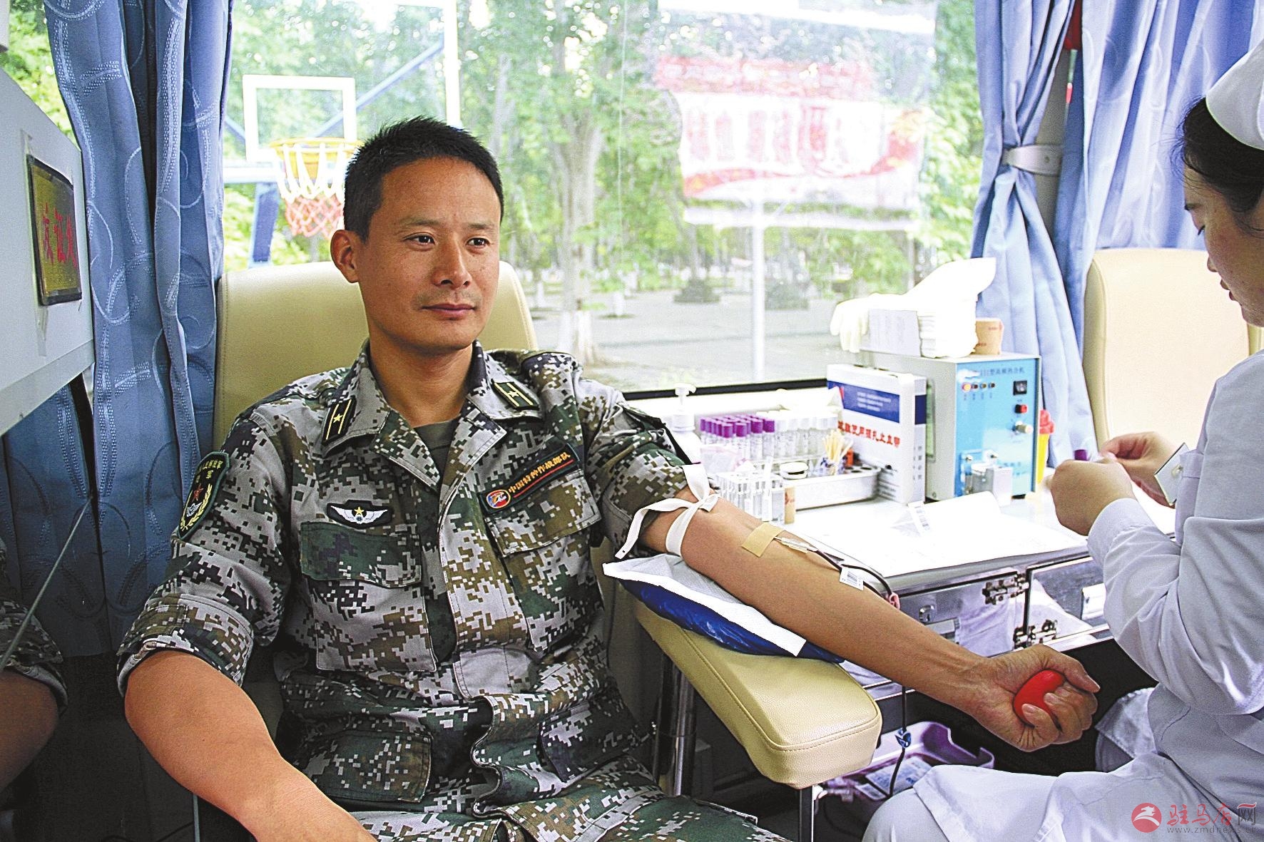 近日,市中心血站工作人员来到解放军驻确山某部,组织开展无偿献血活动。据了解,当天有300多名部队官兵积极参加无偿献血。