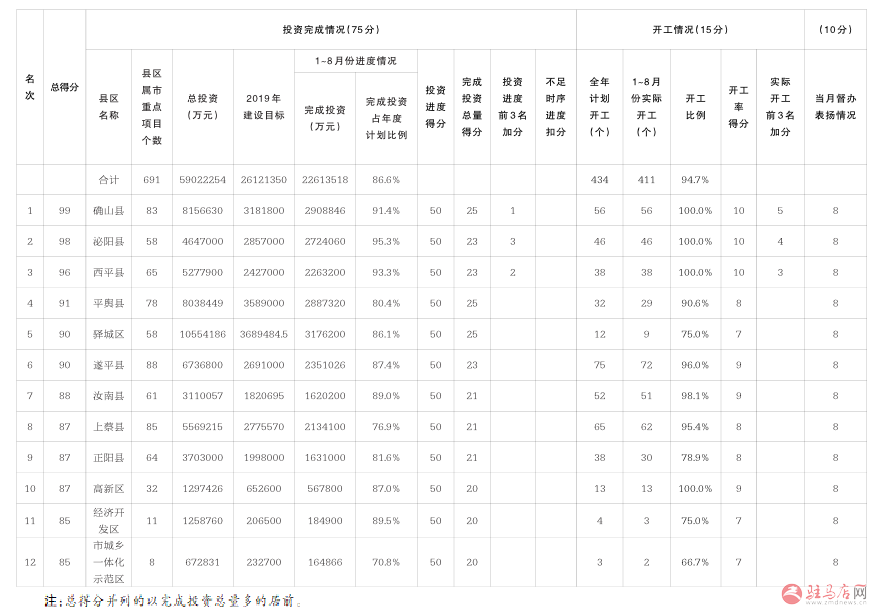 2019年县区属市重点建设项目1~8月份进度综合排序表