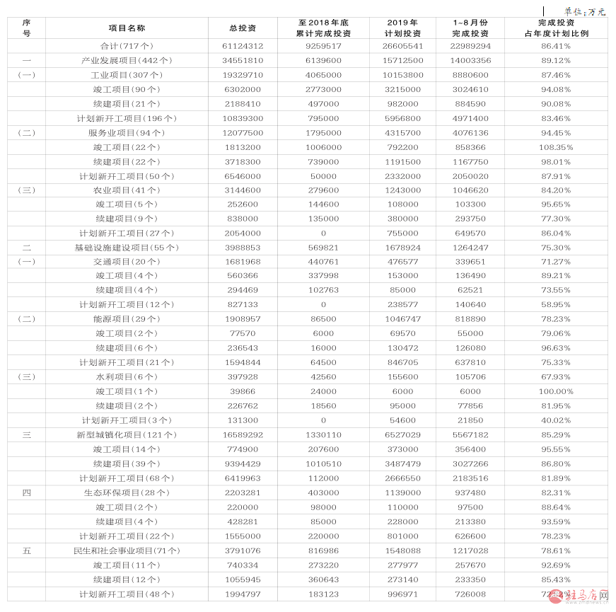 ——生态环保项目。28个生态环保项目1~8月份完成投资93.7亿元,占年度投资计划的82%。