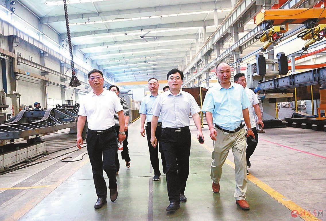 驿城区委副书记、区长毕启民(中)在企业调研。