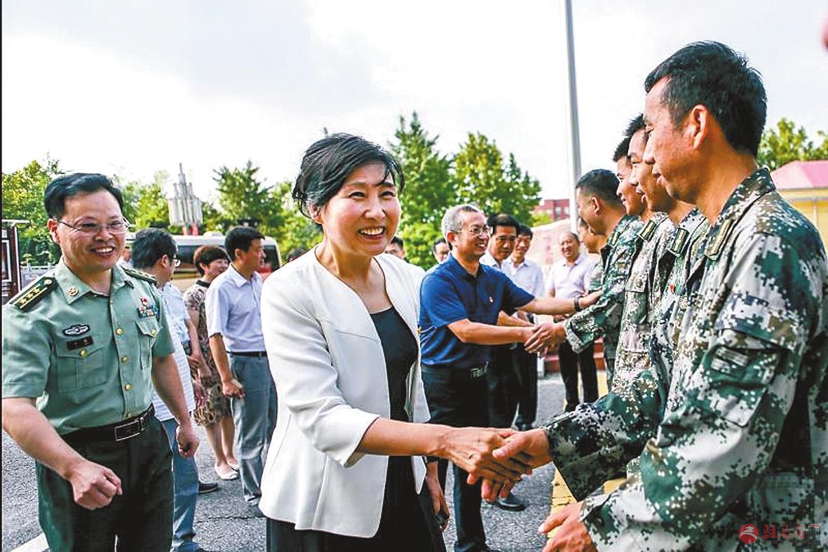 市政协副主席、正阳县委书记刘艳丽(左二)看望慰问驻正阳县部队官兵,并调研双拥工作。