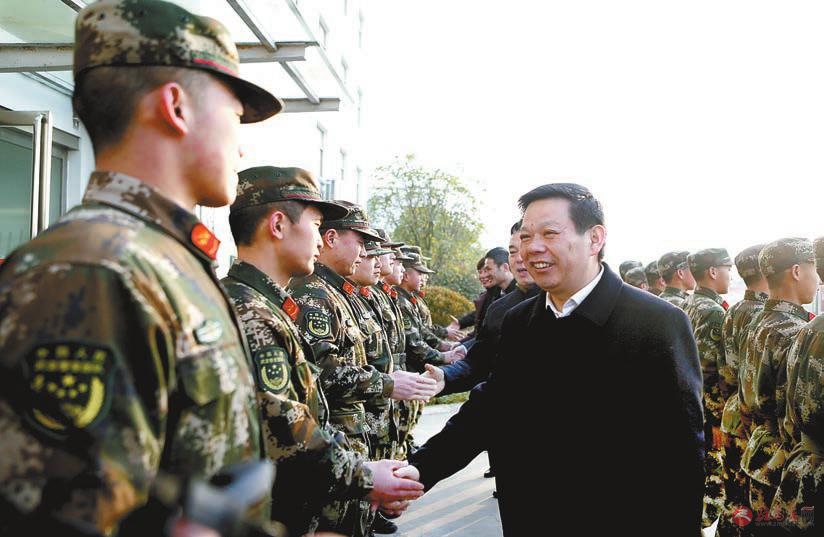 正阳县委副书记、县长王东征(右一)带着全县人民对人民子弟兵的深情厚谊,看望慰问驻正阳县部队官兵。
