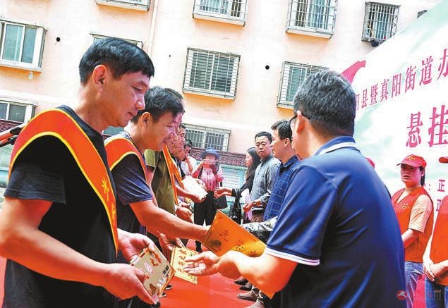 正阳县为烈军属和退役军人家庭悬挂光荣牌,受到家属们一致好评。