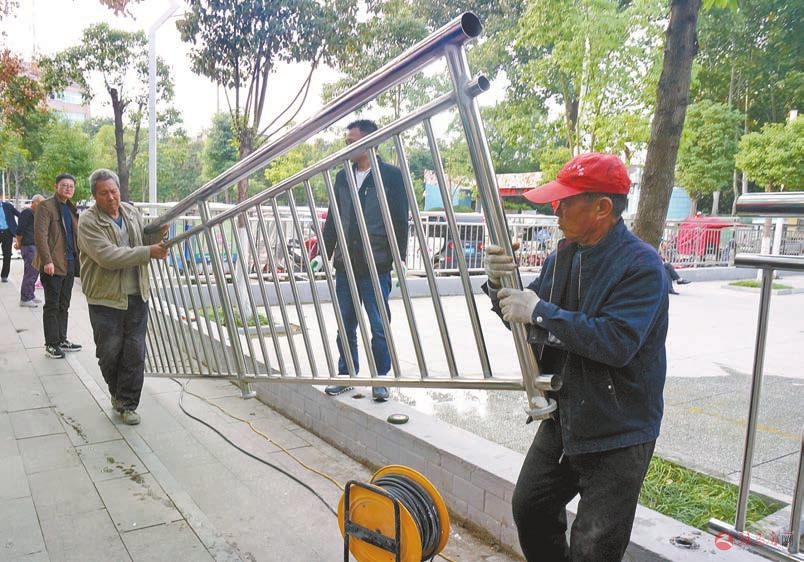 近日,市园林绿化中心工作人员正在对市区儿童公园和世纪广场围栏进行拆除。