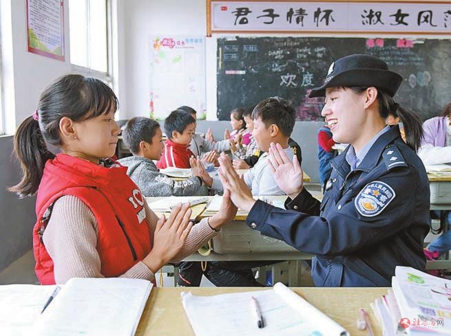 为切实提高青少年儿童自我防范能力,预防和减少涉校案事件的发生,近日,正阳县公安局结合少年儿童年龄特点和认知特征编写了《小学生安全防范拍手歌》。图为该局民警在县第十三小学推广《小学生安全防范拍手歌》。