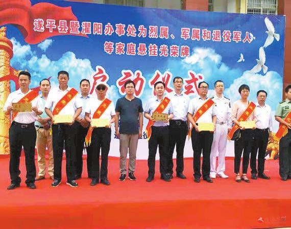 2019年5月17日,遂平县暨灈阳街道办事处为烈属、军属和退役军人家庭悬挂光荣牌启动仪式举行,这标志着遂平县为烈属、军属和退役军人家庭悬挂光荣牌全面启动。据遂平县退役军人事务局统计,至目前,遂平县符合悬挂光荣牌条件的17824人,已悬挂光荣牌17644人,悬挂光荣牌率为98.99%。开展退役军人和其他优抚对象信息采集工作如火如荼。至目前,遂平县已采集18141人,审批通过18000人,审批通过率99.2%。