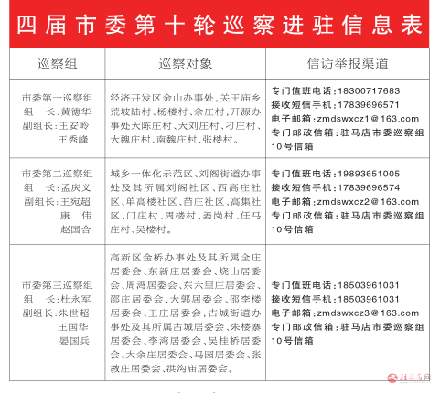 四届市委第十轮巡察进驻信息表