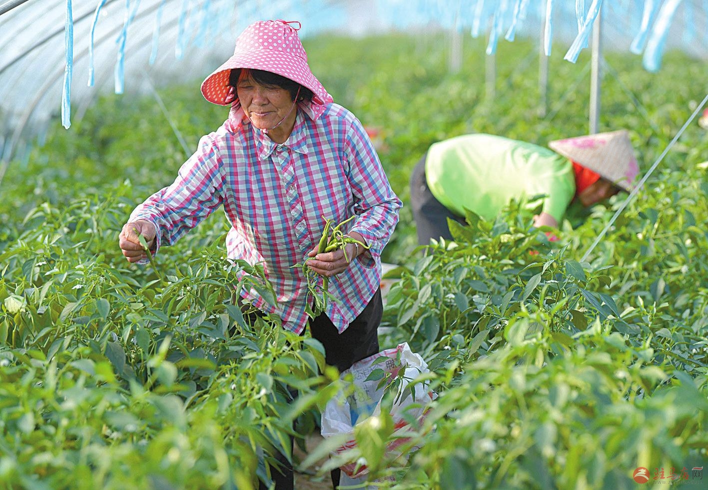 在江西省南昌市新建区象山镇河林村设施果蔬种植基地,当地农户在温棚内采摘成熟的辣椒(10月29日摄)。近年来,江西省南昌市新建区象山镇河林村大力发展现代设施农业,为农户拓宽产业路径,温棚种植让农民“农闲不闲”。农产品通过直销包销的方式与周边城镇大型商超对接,帮助当地农民脱贫增收。