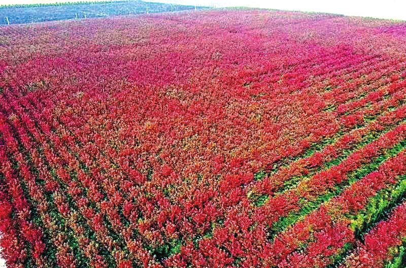 “停车坐爱枫林晚,霜叶红于二月花。”日前,笔者来到位于遂平县的河南名品彩叶苗木股份有限公司苗木种植基地,万亩彩叶苗木在这深秋十月里呈现别样的色彩,似一幅美丽多彩的田园画卷。