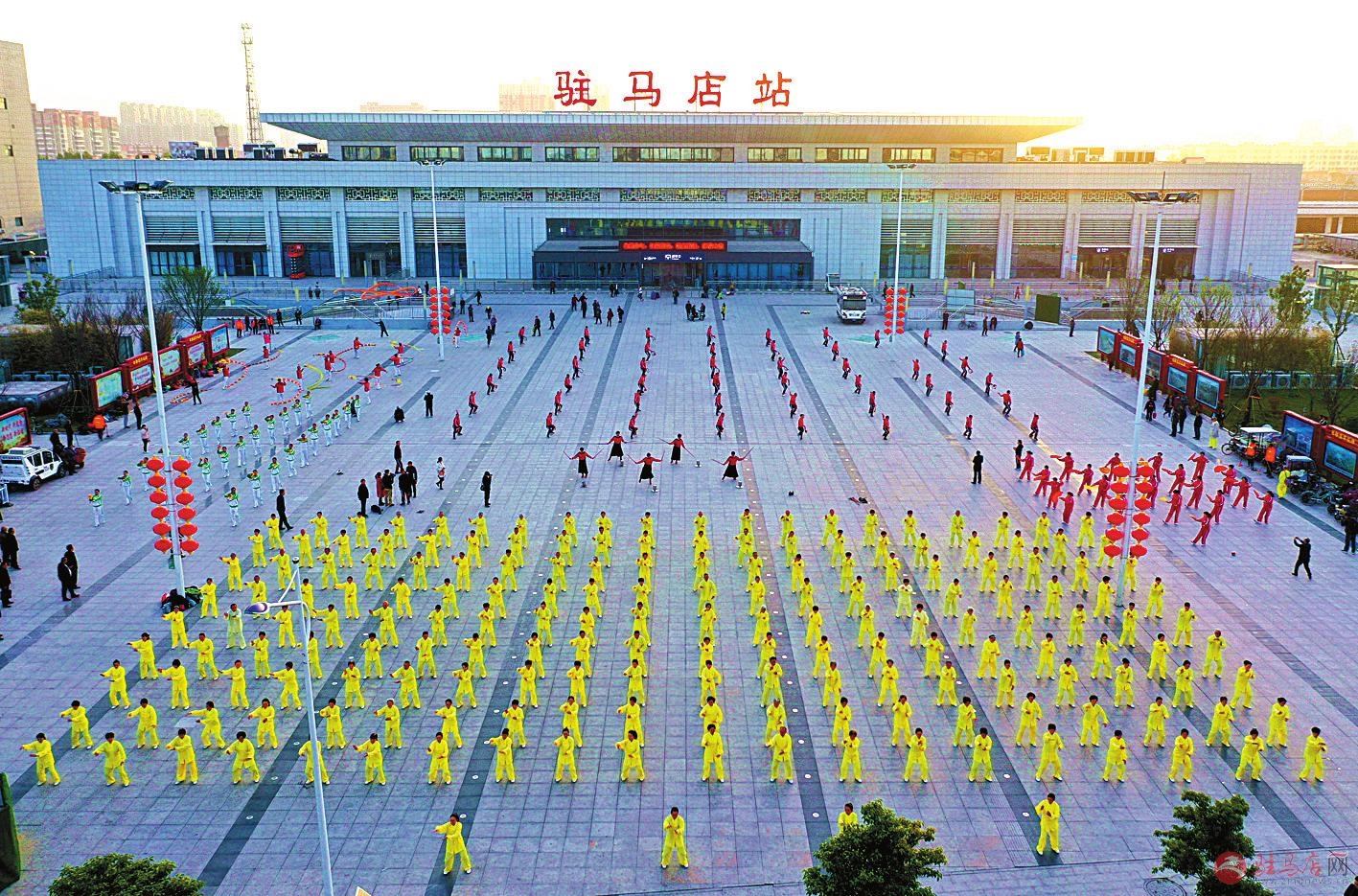 10月29日,由驿城区老体协牵头、驿城区新华街道办事处组织800多名太极拳、空竹、功夫扇、健身球、广场舞等爱好者在驻马店火车站广场举行晨练活动。