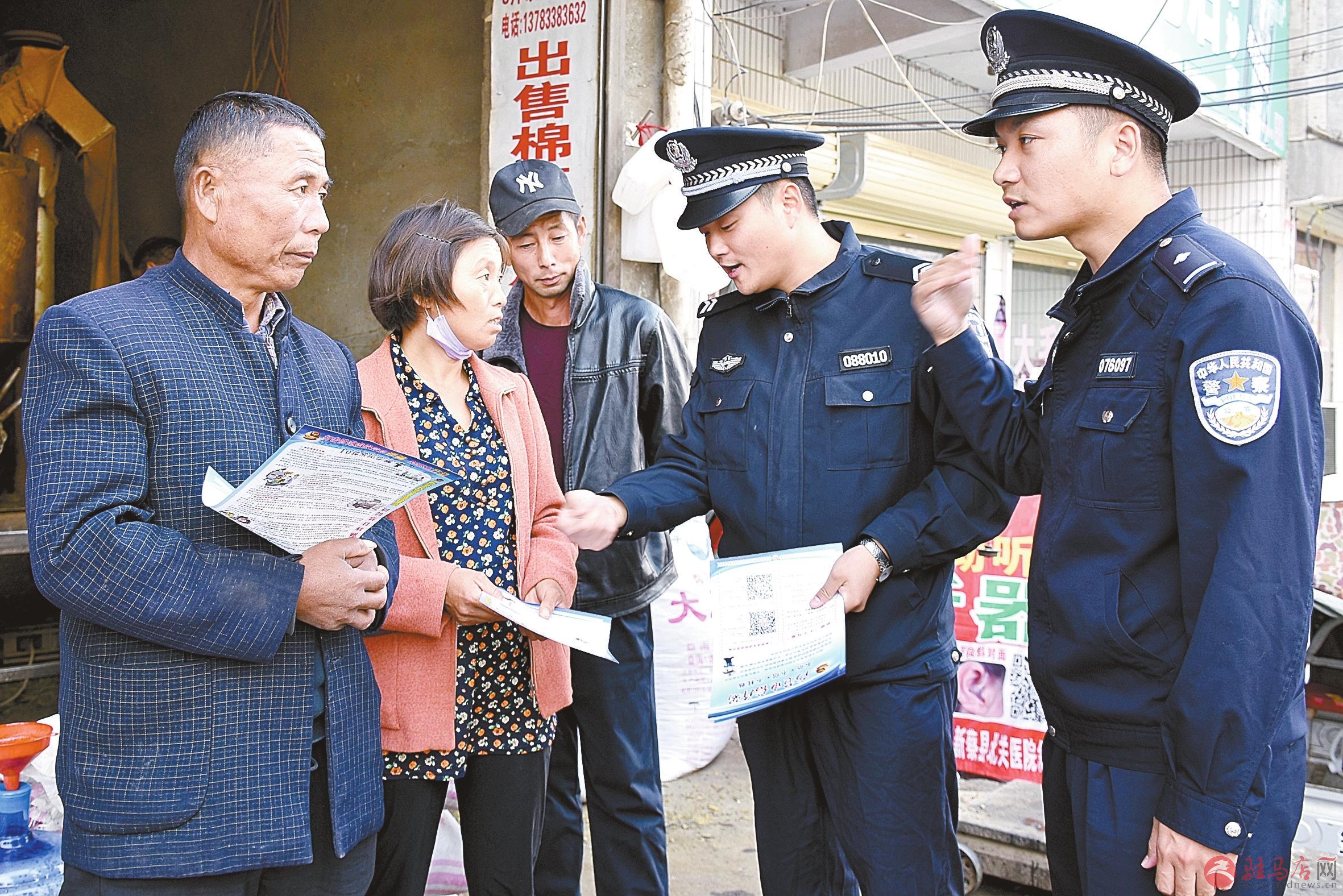 连日来,新蔡县公安局充分发挥“一村(格)一警”作用,在辖区开展“服务基层、服务企业、服务群众”活动,组织警务室、工作站的民警和辅警到街道村庄、企业工厂开展矛盾纠纷排查化解和安全防范宣传,听取群众对公安工作建议,受到群众支持。图为黄店警务室民警为群众讲解防盗、防抢、防骗等安全防范知识。