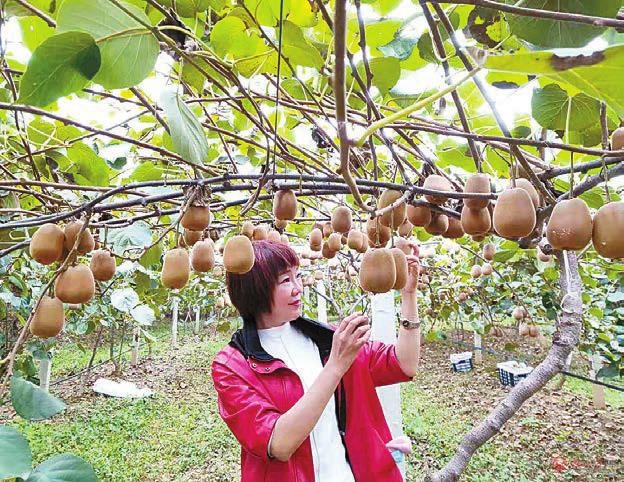 蓝天白云下,昔日的撂荒地平整一新,猕猴桃树一片连着一片。近日,笔者走进西平县出山镇酒店村猕猴桃园,看到饱满硕大的猕猴桃缀满枝头。在西平县鑫福临种植专业合作社院里,几个农家媳妇有说有笑,忙着分拣果子,称重装箱。