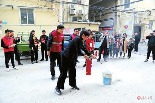 11月9日是全国消防宣传活动日,平舆县古槐街道办事处联合县文明委、消防大队、西塔寺社区举行消防知识宣传和火灾扑灭实战演练进社区活动。