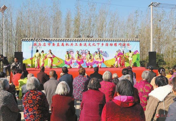 11月14日上午,市直工委开展“三下乡”暨机关支部与泌阳县高邑镇谭园村支部结对共建“手拉手”活动,这是市老干部艺术团为当地群众表演了精彩的文艺节目。同时,市直工委还组织市中心医院医务人员组成医疗服务队,在谭园村委大院为村民进行医疗服务及向谭园小学进行赠书仪式。