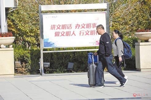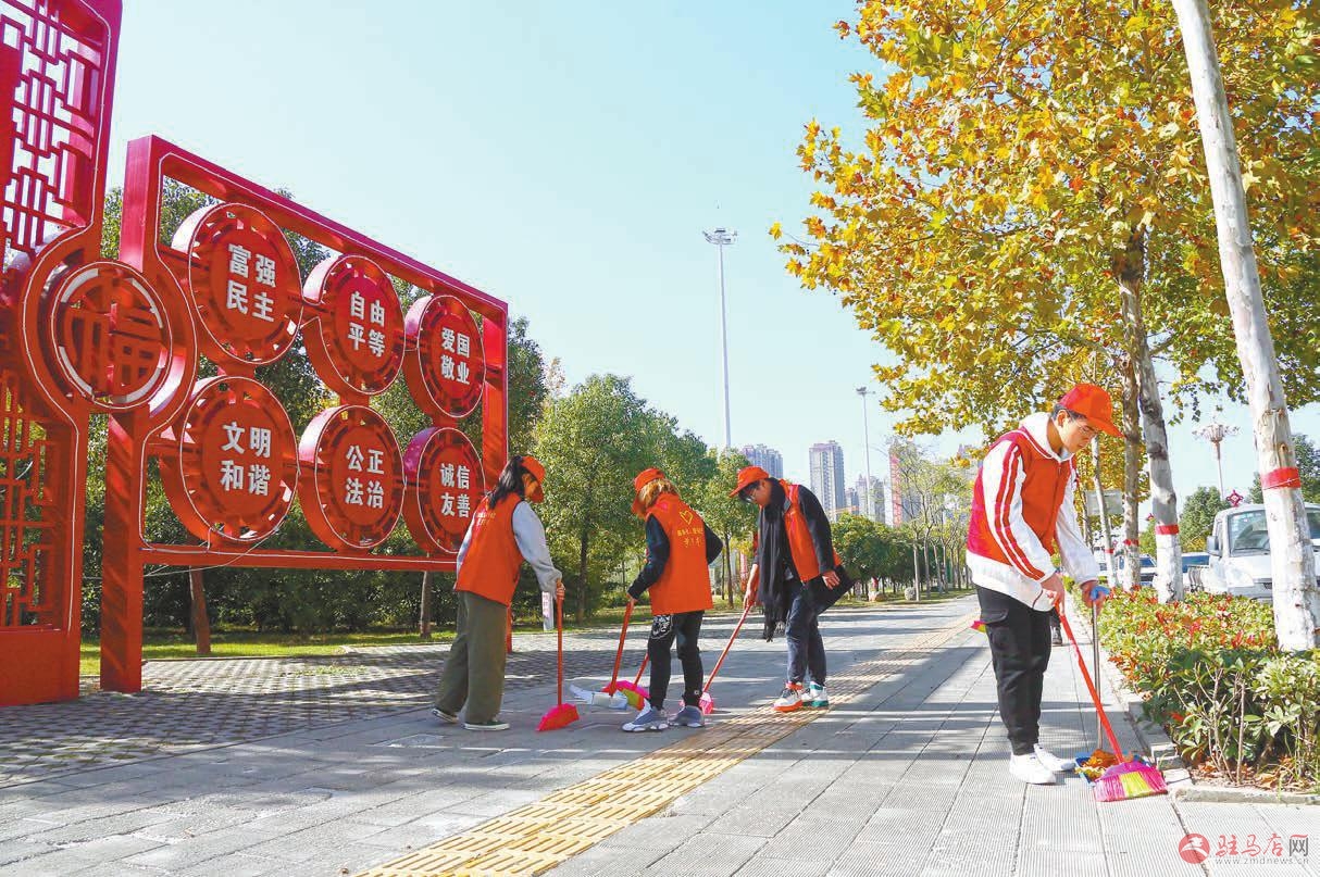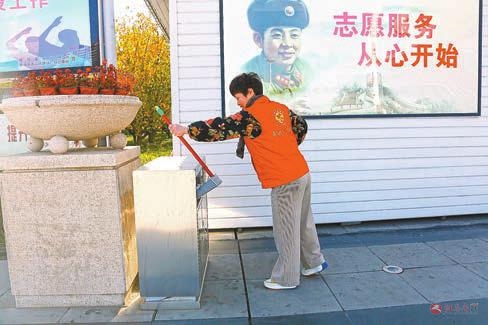 11月14日,志愿者在驻马店西站广场打扫卫生。 记者 李旻 摄