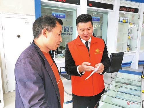 中原银行驻马店广场支行志愿者热情服务储户。记者 邓桦 摄