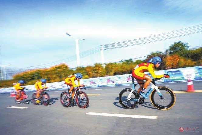 11月13日是比赛的第一天,简短的开幕仪式后,伴随着发令员的一声哨响,斗志昂扬、雄姿英发的参赛选手戴着头盔、穿着队服、骑着色彩绚丽的自行车,像离弦的箭一样冲出起点,浩浩荡荡的车队变成了一条条飘动的彩色丝带,参赛选手你追我赶、激情角逐,尽情享受着运动带来的快乐。同时,沿途秋色如画的美景,赛道两旁的交警、公安、志愿者等温暖周到的服务也给赛手们留下了深刻的印象。比赛休息间隙,赛手们纷纷拿出手机、相机合影留念。