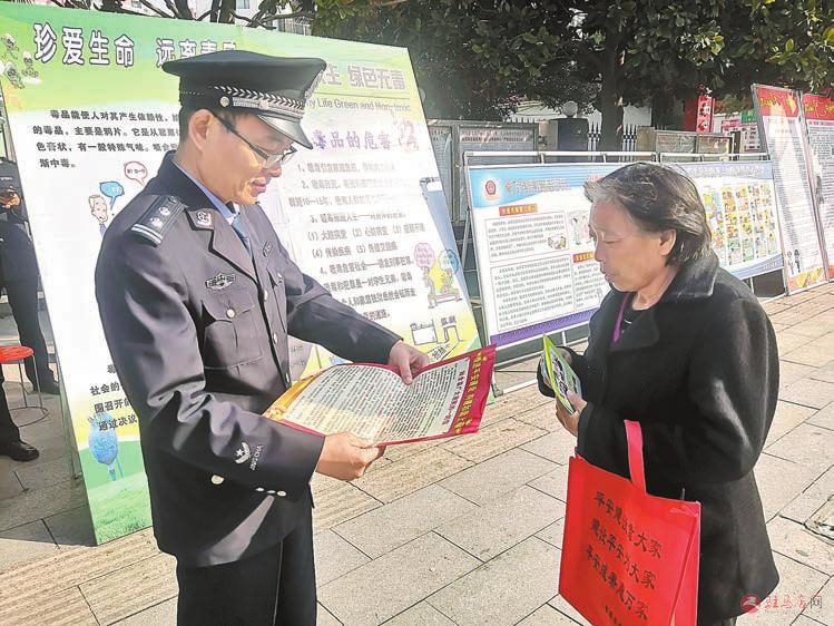 近日,上蔡县公安局民警走上街头开展宣传活动,对预防冒充军人诈骗和盗抢工作进行重点防范宣传。