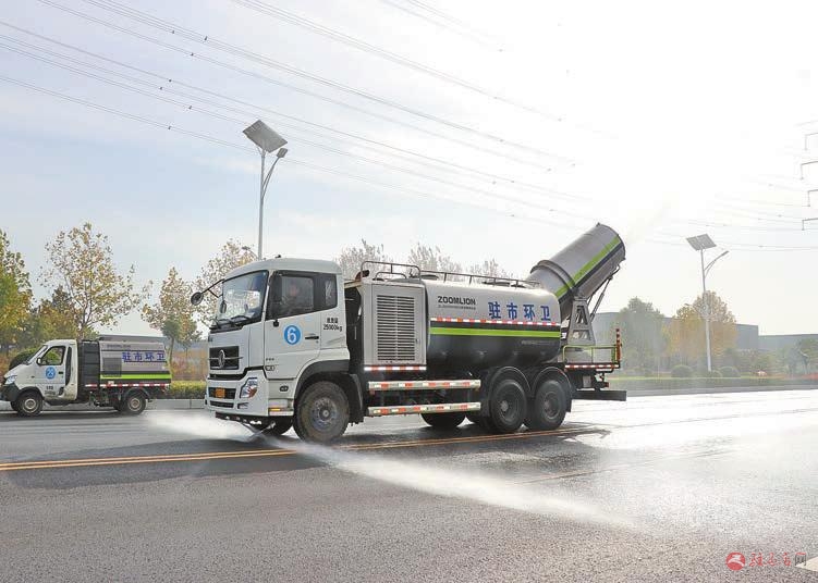 高新区城市管理局组织多种车辆进行道路清扫和抑制扬尘。记者 唐翀 通讯员 胡楠 摄影报道
