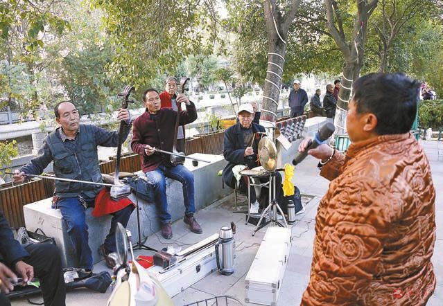 多年来,我市戏曲业余爱好者工作之余,不约而同聚集在骏马河带形公园,交流技艺、自娱自乐,成为戏曲爱好者的乐园。记者 李旻 摄