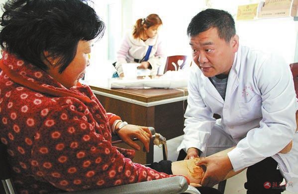 11月25日,驻马店段庄孙全贵骨科医院的专家在为来自山东的一名骨折患者进行治疗。位于驿城区水屯镇的驻马店段庄孙全贵骨科医院,以精湛的医疗技术吸引了全国各地的骨伤患者前来就诊。