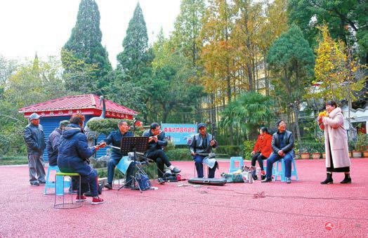 戏曲爱好者在市区南海公园献艺。记者李旻摄