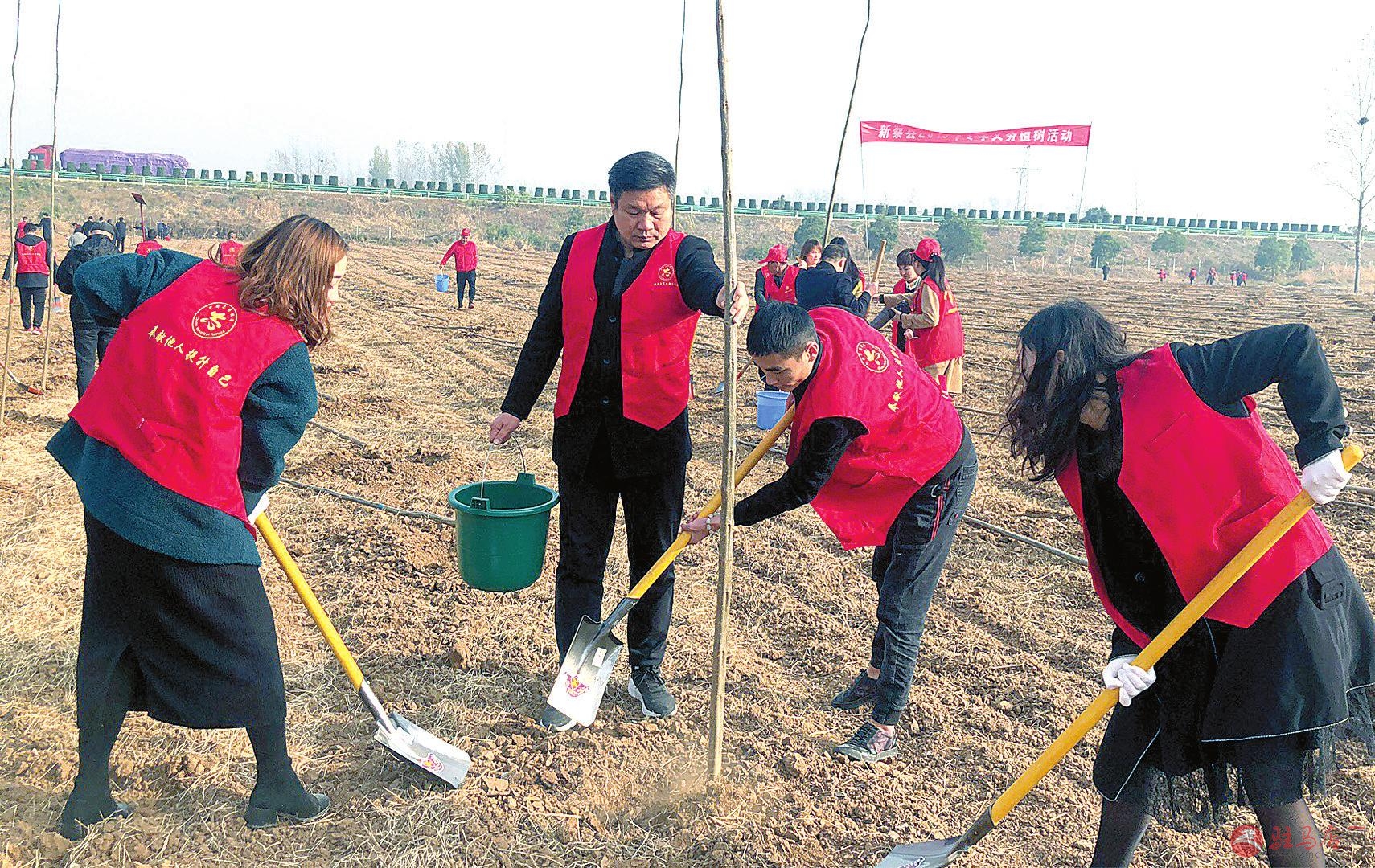 近日,新蔡县总工会志愿服务队前往孙召镇开展义务植树。
