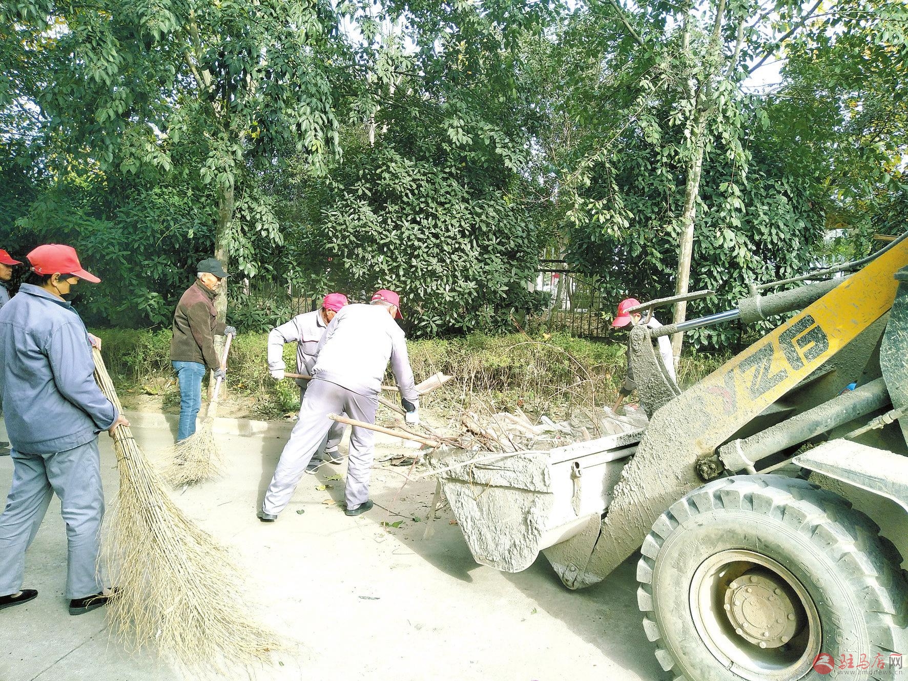 图①高新区金桥办事处环卫工人对金桥社区内的卫生死角进行清理。
