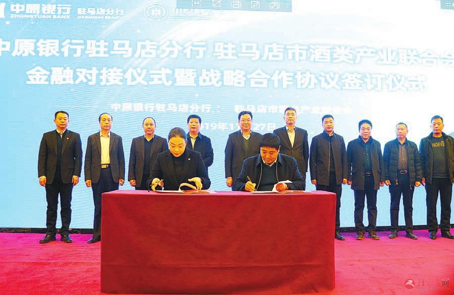 11月27日,中原银行驻马店分行与驻马店市酒类产业联合会签订战略合作协议,旨在进一步深化银企合作,促进资源共享、产业升级。