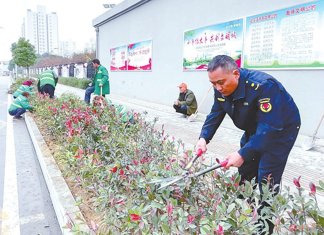 开发区城市管理局工作人员在市区花坛中补栽和修剪绿化带。 记者 唐翀 通讯员 黄倩 摄影报道